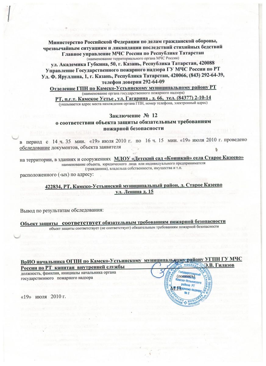 Заключение о соответствии объекта защиты обязательным требованиям пожарной безопасности