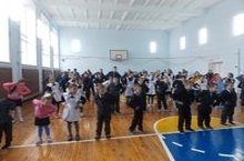Каждое утро в школе начинается с зарядки. Все учащиеся по звонку собираютя в спортивный зал школы, где члены ученического самоуправления "НИКО" проводят зарядку.