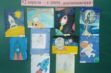 Выставка рисунков ко Дню космонавтики.