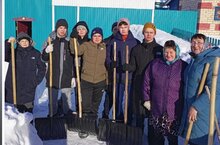 Обучающиеся 8,10 классов совместно с советником директора по воспитанию помогли матери участника СВО. Обучающиеся выкапывали снег вдоль забора.
