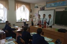 С 1 по 31 октября в образовательных организациях Камско-Устьинского муниципального района проходит месячник гражданской обороны. В 8 классе прошел классный час на тему: "Порядок применения огнетушителей".