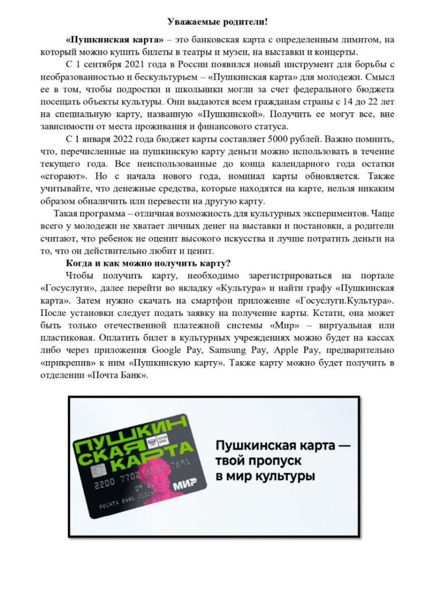 Пушкинская карта - твой пропуск в мир культуры!