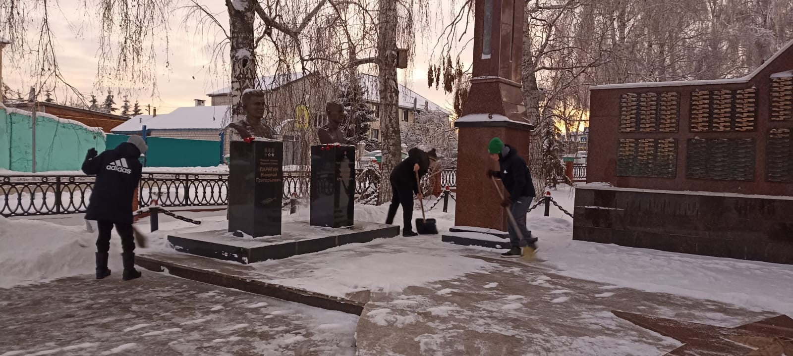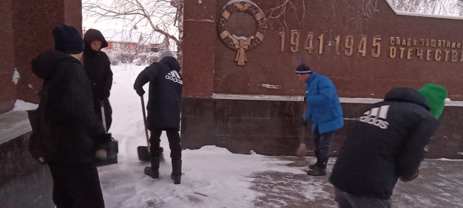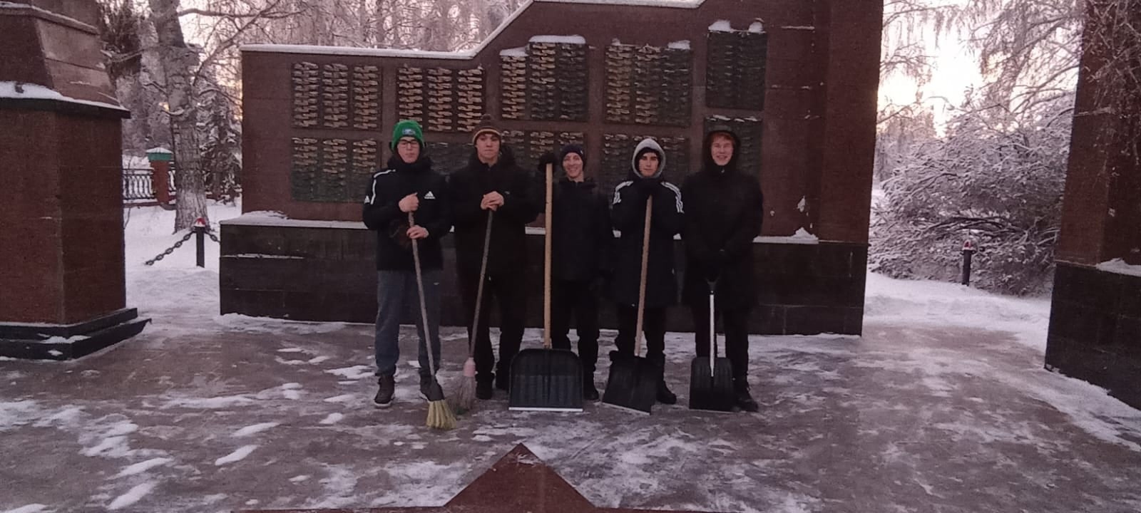 11 нче сыйныф укучылары "Җиңү Паркы"мемориалы территориясендә җыелды. Сыйныф җитәкчесе һәм Әтиләр Советы вәкиле җитәкчелегендә балалар һәйкәлне кардан чистарттылар.