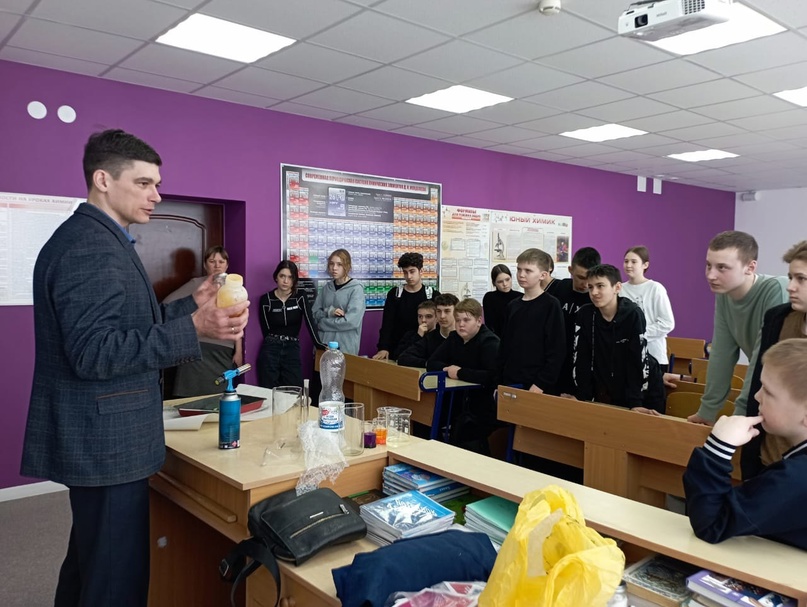 Сегодня в нашей школе прошла встреча восьмиклассников с доцентом кафедры «Химии и технологии органических соединений азота» КНИТУ Петровым Е.А.