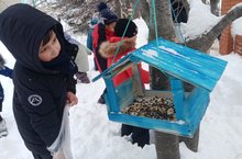 Зима - трудное время для птиц. В этот период года пернатые гибнут не от холода, а от голода, так как им бывает сложно добывать корм. Ещё в ноябре месяце учащиеся начальных классов развесили кормушки на пришкольной территории и периодически их проверяют. Ребята чистят кормушки от снега и наполняют их кормом.
