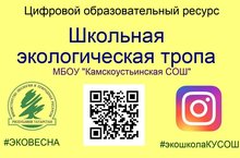 В этом году в связи с повышенной эпидемиологической ситуации в стране, школьная экологическая тропа создавалась учителями в виртуальном режиме с учащимися. Детям были представлены для просмотра видео-фрагменты станций школьной тропы. Учащиеся изучали их, готовили проекты по ним, рисовали рисунки, проводили онлайн-встречи на занятиях внеурочной деятельности. По итогам проекта был создан цифровой образовательный ресурс «Школьная экологическая тропа». Вся работа по созданию ресурса отражена в инстаграмме под хэштеггом #экошколаКУСОШ и на сайте школьной экологической тропы. Приглашаем вас пройти по экологической тропе Камскоустьинской средней общеобразовательной школы. Надеемся, что данный ресурс будет способствовать осознанному усвоению знаний учащимися в области экологического образования и воспитания, а также позволит сделать уроки более интересными, продуманными и мобильными. Для более подробного ознакомления пройдите по ссылке https://sites.google.com/view/ecotropa