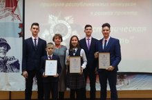 В Казани прошла церемония награждения победителей и призеров Республиканского конкурса "Историческая память". Учащиеся 10 класса Гарифуллин Альберт, Ишанов Айрат и Севастьянов Дмитрий стали Победителями в номинации "Их именами названы улицы..", которые под руководством Гумеровой М.А. сняли видеоролик о Чиркове. Ученик 3Б класса Тухватуллин Альфред под руководством Хабибулиной Н.С. стал Победителем в номинации фотоработы. Закирова Эльза, ученица 7 класса стала лауреатом конкурса в номинации "Листая страницы истории школы", руководитель Гумерова М.А.