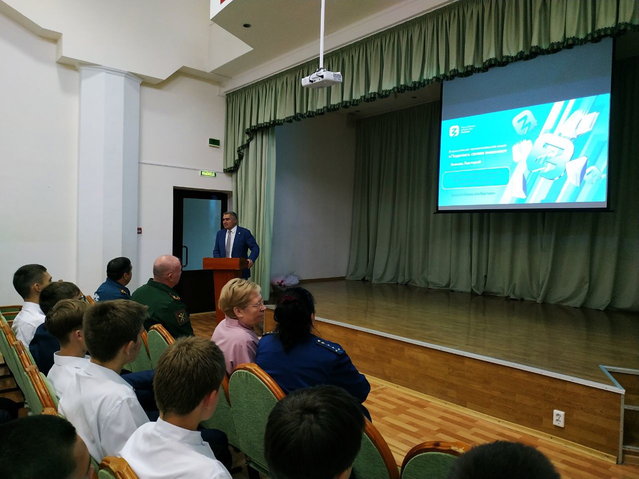 1 сентября классный час для старшеклассников провели глава Камско-Устьинского района Наиль Вазыхов и полковник в запасе, участник проекта "Вахта героев Отечества", Герой Российской Федерации Рустем Клупов. На Уроке мужества говорили о том, что такое Родина, мужество, патриотизм. В нашу Республику прибыли 20 Героев, которые в течение нескольких дней должны встретиться со старшеклассниками восьми районов Республики Татарстан.