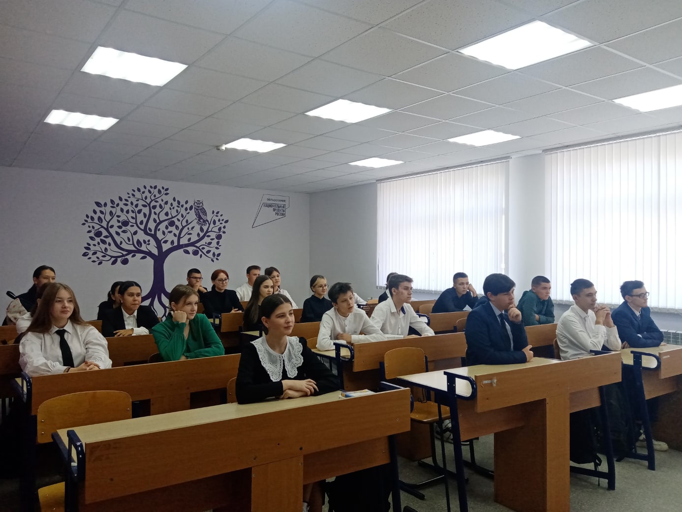 Бүгенге аралашу сәгатенең темасы Белем көне булды. «Мөһим нәрсәләр турында сөйләшүләр» дәрестән тыш дәресе видеороликлар һәм уен элементлары кулланып әңгәмә форматында узды. Укучыларга Россия Президенты Владимир Путинның 1 сентябрьдә узган «мөһим нәрсәләр турында сөйләшү» Бөтенроссия дәресендә укучылар белән очрашуыннан алынган язманы күрсәттеләр. Аннары балалар Белем көне традицияләре турында белделәр һәм мәктәп традицияләре турында сөйләштеләр.