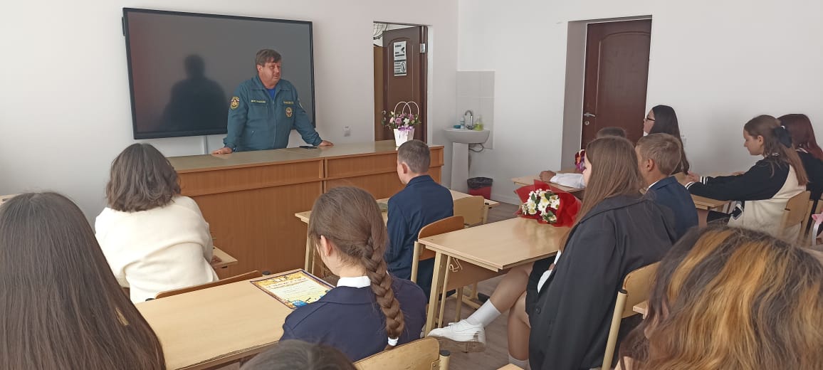 На классном часе 1 сентября во всех классах состоялись беседы и классные часы с демонстрацией презентаций и видеороликов о правилах поведения в случае возникновения пожара, о безопасности на водоемах, о безопасном поведении в бытовых условиях, а также террористической угрозе.