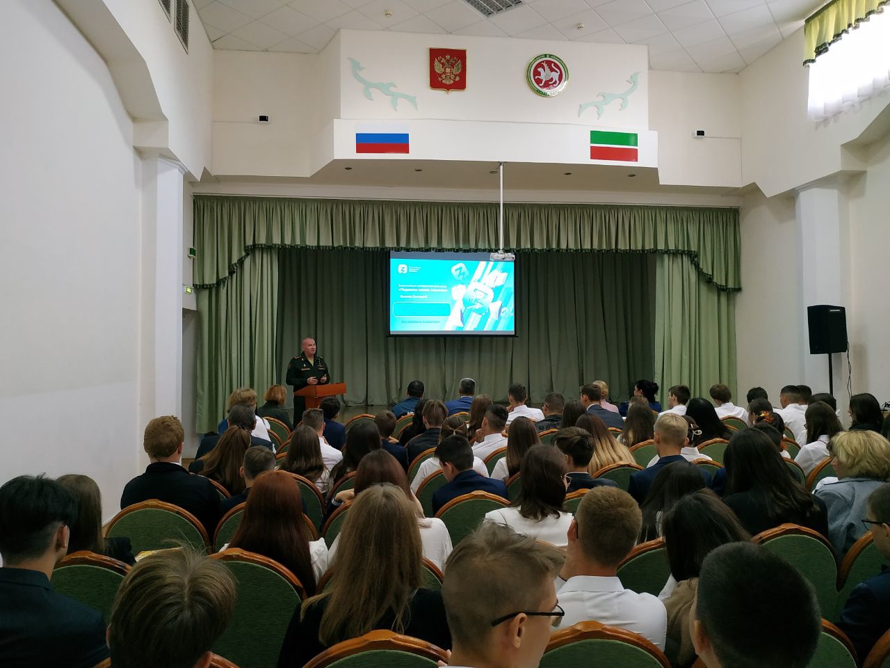 1 сентябрьдә югары сыйныф укучылары өчен сыйныф сәгатен Кама Тамагы районы башлыгы Наил Вазыхов һәм запастагы полковник, "Ватан геройлары вахтасы" проектында катнашучы, Россия Федерациясе Герое Рөстәм Клупов үткәрде. Батырлык дәресендә Туган ил, батырлык, патриотизм нәрсә икәне турында сөйләделәр. Безнең республикага 20 Герой килде, алар берничә көн эчендә Татарстан Республикасының сигез районының өлкән сыйныф укучылары белән очрашырга тиеш.