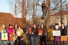 Совет Отцов школы вместе с учащимися установили более 20 скворечниковна деревья в районном парке Победы.