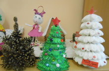 В школе среди учащихся начальных классов прошел конкурс новогодних игрушек. Обилие красок, цветов и форм еще раз подтверждает обилие фантазии у детей. По итогам конкурса на новогодних елкам всех участников конкурса поощрили грамотами. А елочные игрушки украсили школьную елку.