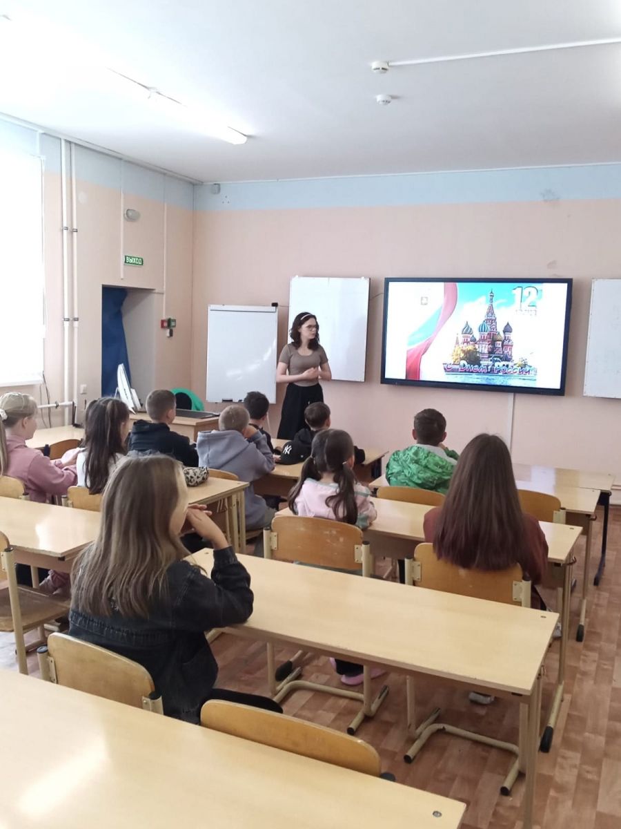 Мәктәп яны хезмәт һәм ял лагеренда Россия көнен бәйрәм итү булды. Балалар бәйрәм тарихы белән таныштылар, Россиянең дәүләт символлары: герб, флаг һәм гимн турында күп яңа һәм кызыклы нәрсәләр белделәр. «Минем Ватаным - Россия " интеллектуаль викторинасында рәхәтләнеп катнаштылар, төрле станцияләрдә Россия тарихы, географиясе буенча биремнәр үтәделәр, Рус мәкальләрен төзеделәр һәм ватан турында шигырьләр укыдылар. Чараны практикант Матросова Юлия үткәрде.