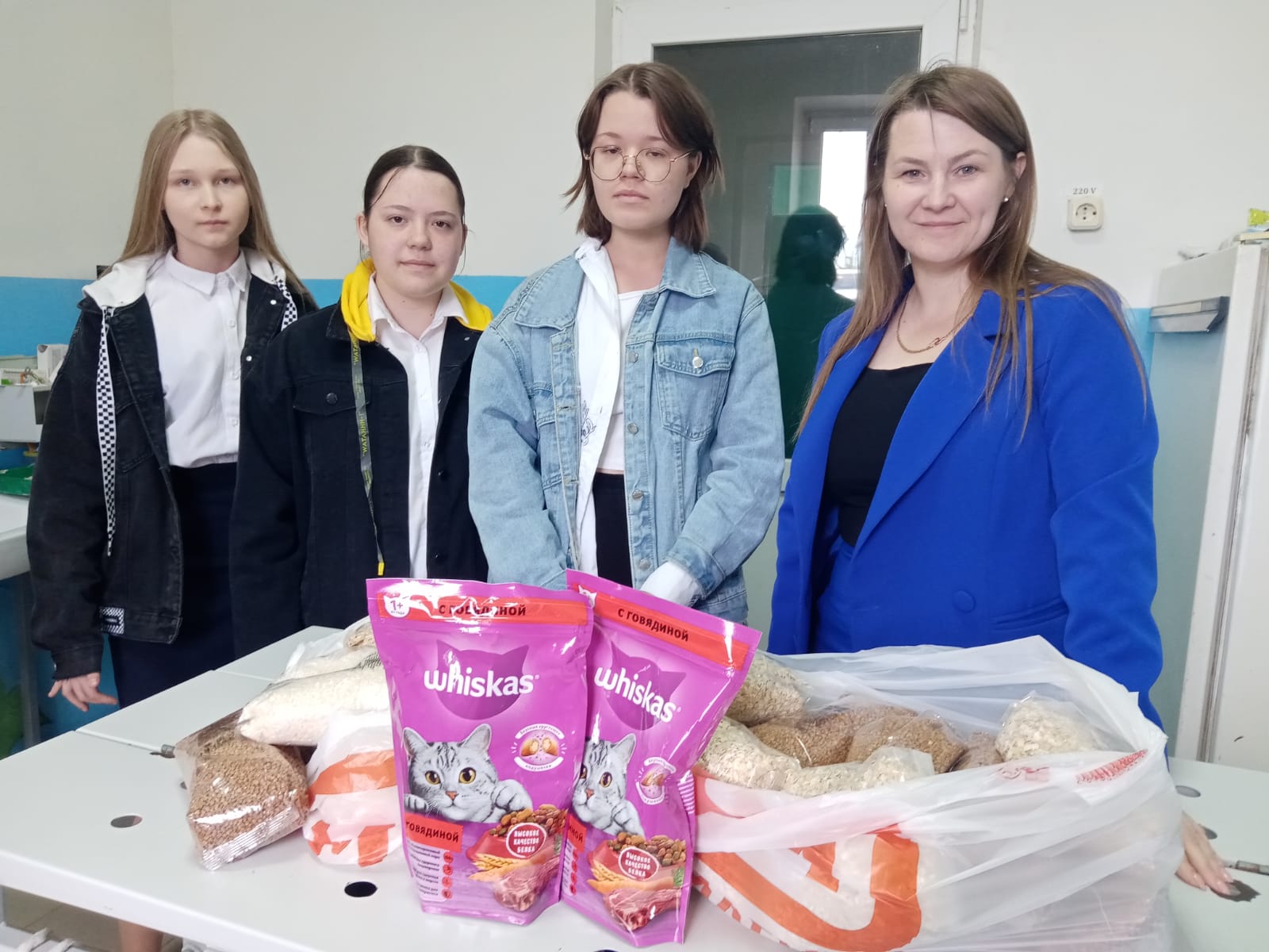 Активисты отряда "Зеленый патруль" приобрели продукты питания для собак и кошек и передали их в Ветеринарную службу района. Вся помощь будет передана жительнице с.Красновидово, которая уже несколько лет подбирает бездомных кошек и собак к себе домой. На сегодняшний день у неё 15 собак и 28 кошек.