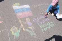В пришкольном лагере в рамках празднования Дня Росси прошел конкурс рисунков на асфальте " Россия мой дом".