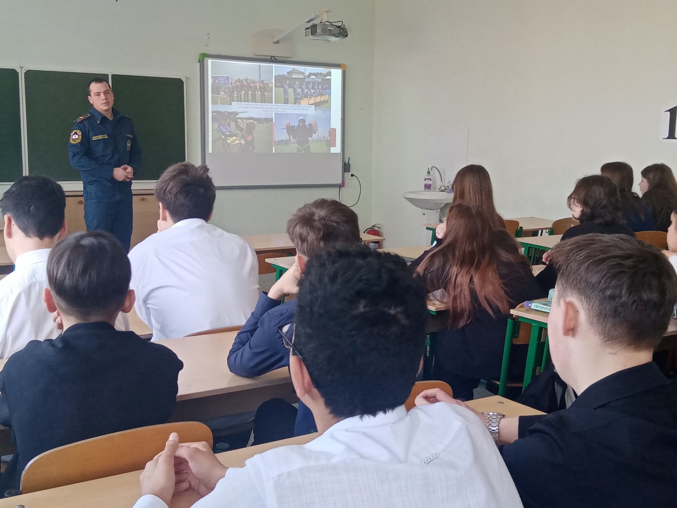Профориентационная встреча со студентом Тетюшского колледжа гражданской защиты. Каждый ученик на пороге выпуска из школы задается вопросом: где продолжить свое обучение? Помогают определиться в данном вопросе встречи с представителями учебных заведений: преподавателями, студентами, выпускниками. Сегодня профориентационную беседу с девятиклассниками Камскоустьинской школы провел выпускник нашей школы Нуриев Рияз - обучающийся 3 курса Государственного автономного профессионального образовательного учреждения "Тетюшский государственный колледж гражданской защиты". Он рассказал ребятам о том, какие профессии можно получить в колледже, об условиях поступления в данное учебное заведение.