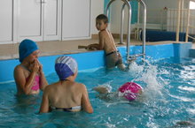 Ежедневно дети пришкольного и трудового лагерей посещают бассейн СОК "Акчарлак".