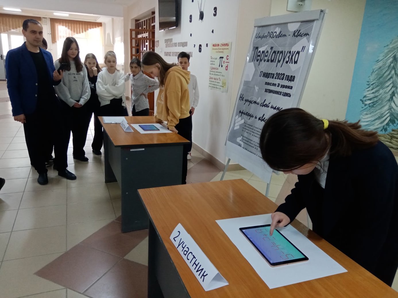 Тәнәфес вакытында логика һәм иҗади фикерләүне үстерү мәсьәләләрен хәл итәбез. Инфопроквет-квест "Перезагрузка" 17 мартта Кама Тамагы мәктәбендә математика, физика һәм информатика атналыгы кысаларында узды. Чарада катнашучыларга, тигезсезлекне дөрес чишү өчен, 3 минут эчендә 1-2 шырпыны алыштырып, табышмакны индивидуаль рәвештә чишәргә туры килә.