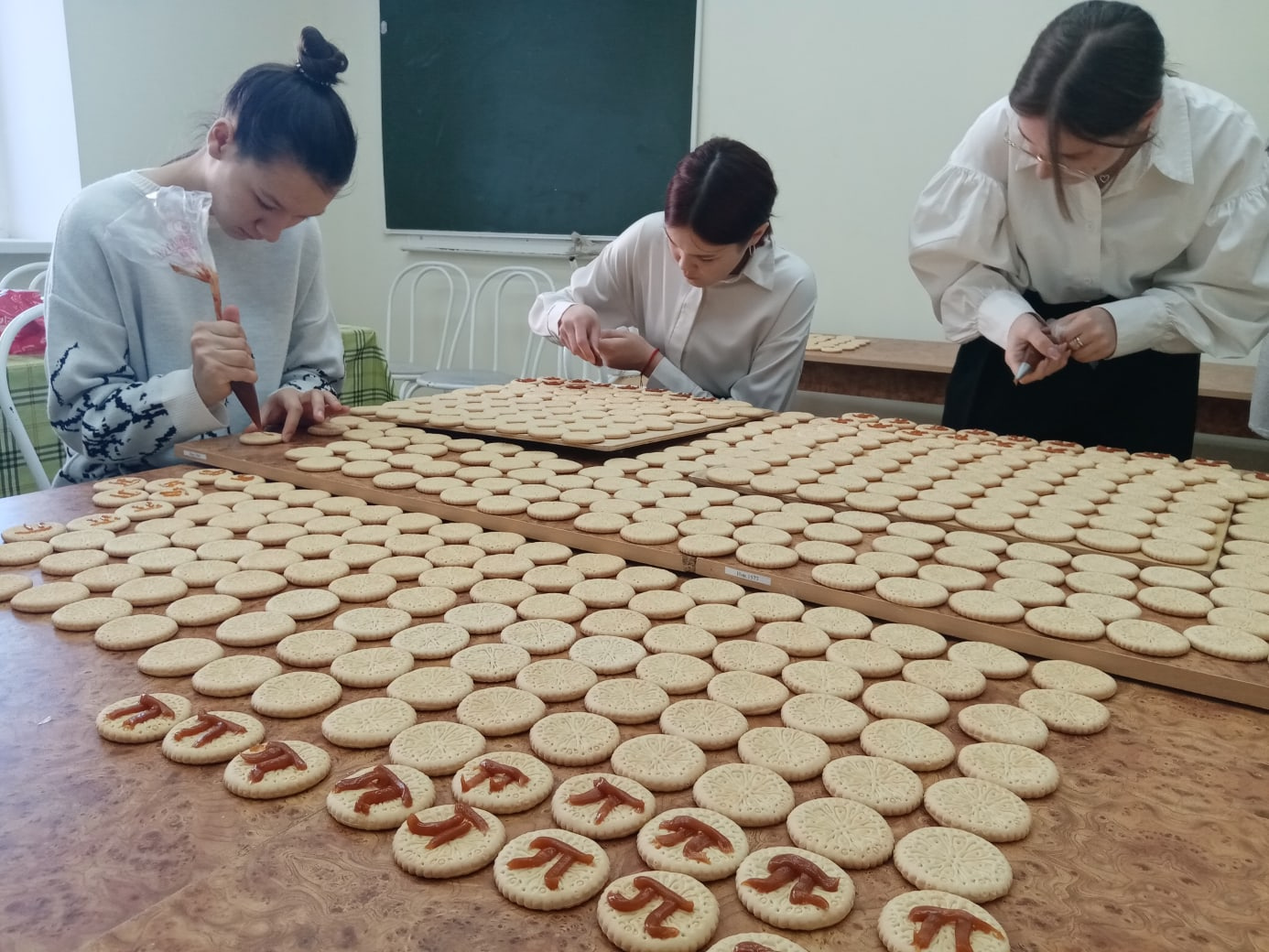 Международный день числа «пи» отмечают 14 марта – в день рождения известного физика и математика Альберта Эйнштейна. Эта дата, записанная в формате «месяц, день», образует всем знакомую комбинацию: 3,14. В рамках Недели математики, информатики и физики в Камскоустьинской школе прошёл просмотр и обсуждение фильма об этом числе, конкурс знатоков числа, и традиционно все угощались печеньем с надписью числа π.