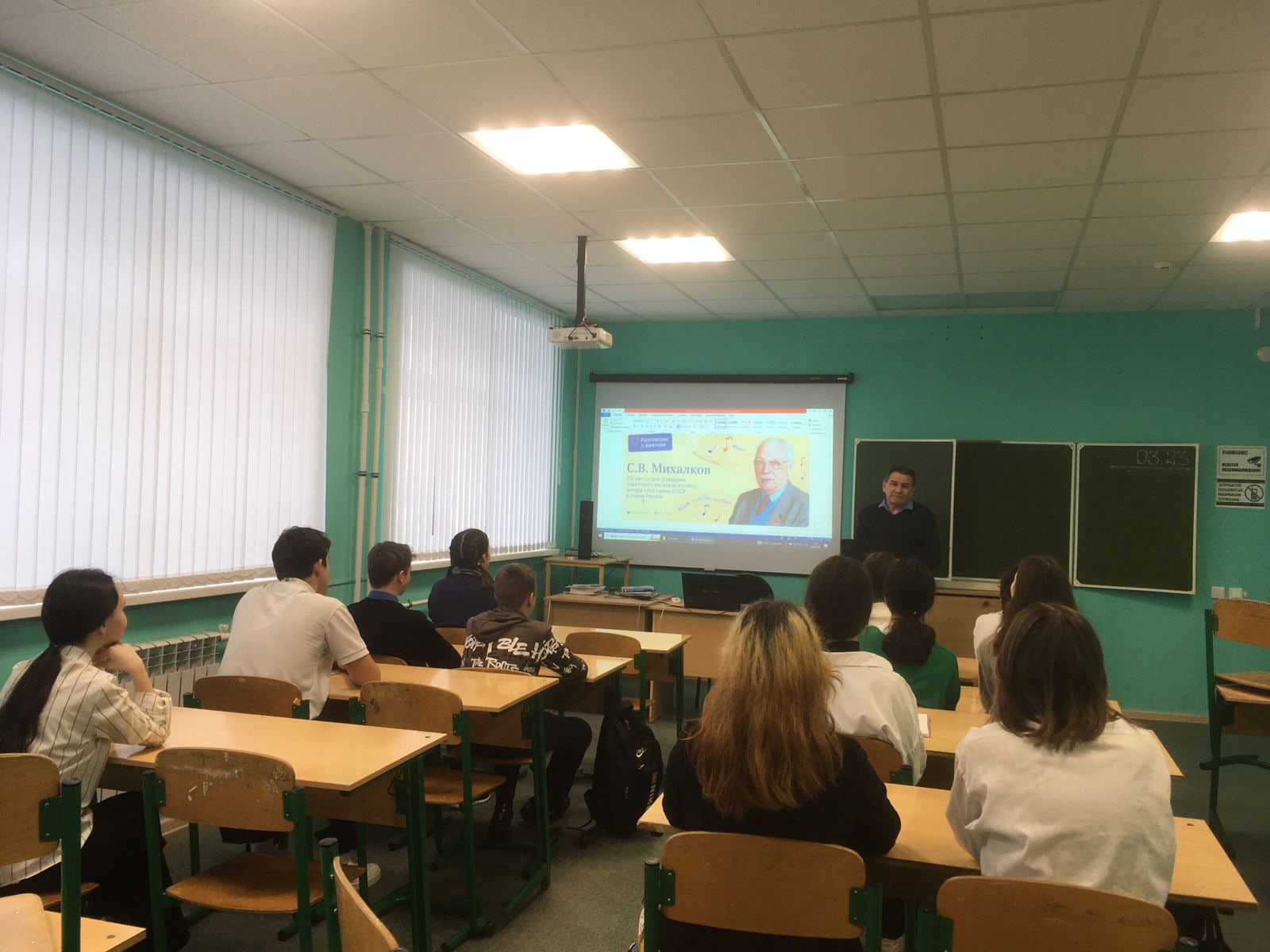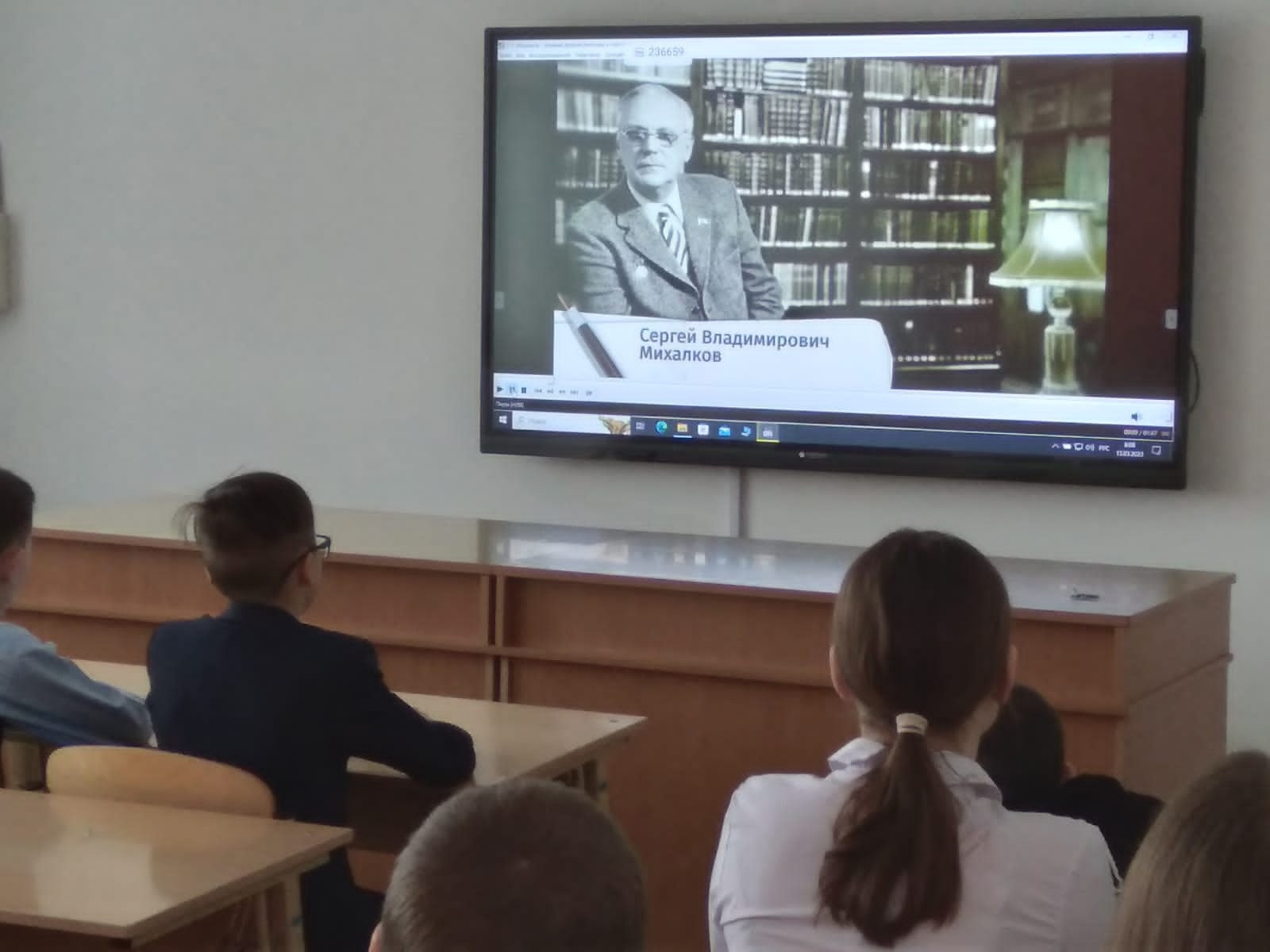 13 мартта мәктәпнең барлык сыйныфларында совет язучысы һәм шагыйре, СССР гимны һәм Россия Гимны сүзләре авторы с.в. Михалкованың тууына 110 ел тулу темасына чираттагы дәрестән тыш дәрес узды. 1913 елда Мәскәүдә совет шагыйре Сергей Владимирович Михалков туган. Без аны, беренче чиратта, балалар шигырьләре һәм әкиятләре авторы буларак беләбез. Шигырьләр язарга ул 9 яшендә башлый, ә беренче шигырен 15 яшендә бастыра һәм кечкенә укучылар арасында популярлык ала башлый. Барысы да авторның шул ук исемдәге әсәреннән атаклы милиционер Дядя Степаны яраталар. Михалков балаларны тоя, аларның дөньяны ничек кабул итүләрен белә һәм һәрвакыт баланы күңелендә сакларга тырыша. Шуңа күрә бүген дә һәр укучы шагыйрьнең шигырьләреннән Юлларны дәвам итә ала:» әниләр төрле кирәк – әниләр төрле мөһим«, " ә безнең фатирда газ бар, ә сезнең? Ә бездә суүткәргеч бар. Менә!». Михалков төрле жанрларда эшли: балалар театрлары өчен пьесалар, мультфильмнар өчен сценарийлар яза, шигырьләр һәм әкиятләр яза, алар безнең илдә генә түгел, ә чит илләрдә дә популяр була. Сергей Михалков балалар әдәбиятының классигы булып санала.