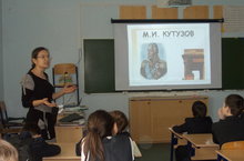 Учитель истории Дорожкова Л.А. рассказала учащимся 7-9 классов о Героях ВОВ, о подвиге Панфиловцев, стоящими насмерть под Москвой, убитыми , но выполнившими свой долг - не пустить в Москву фашистов.