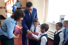 Мәктәпнең профсоюз рәисе Галиханова Г.И. беренче сыйныф укучылары Кәримов Алмаз белән Гимадиев Рамазанга профсоюз оешмасы тарафыннан хәзерләнгән бүләк тапшырды.