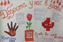 В школе продолжается Весенняя неделя добра. Учащиеся 10 класса сделали плакат "Доброта у нас в крови".