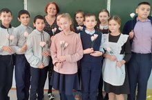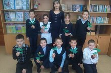 1нче сыйныф укучылар Фахрутдинова Динәнең (1нче сыйныф) әнисе Гөлнар белән бергәләшеп открытка ясадылар.
