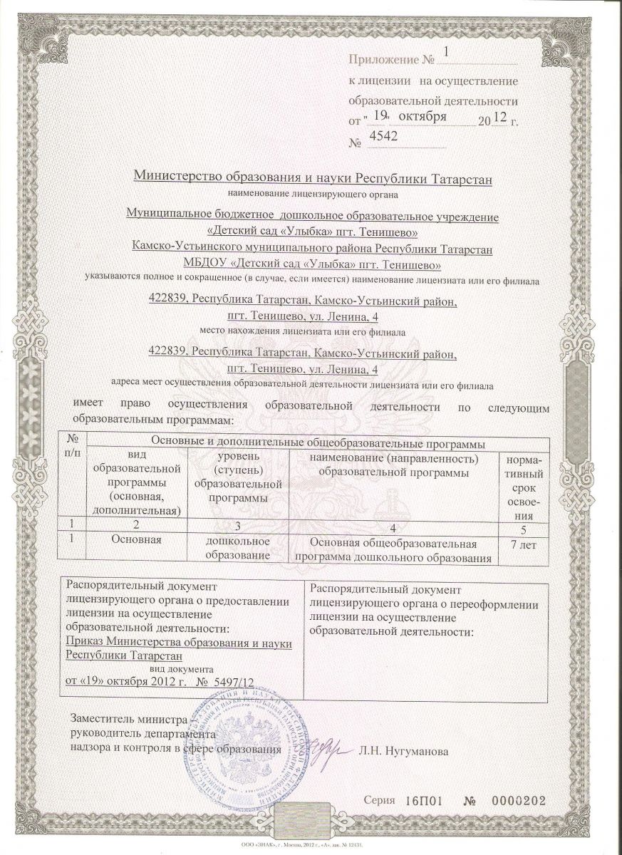 | Короткое название: | МБДОУ "Детский сад "Улыбка" пгт.Тенишево |