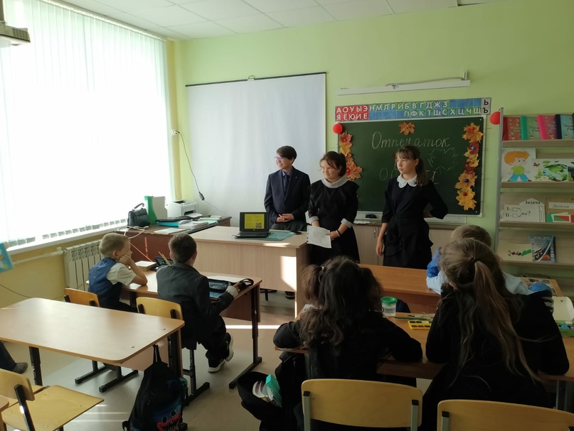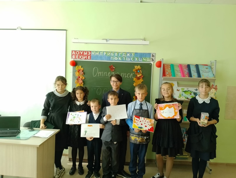 Сегодня, 20 сентября, во 2 классе учащиеся 7 класса провели мероприятие "Отпечаток осени". Дети отгадывали загадки, читали стихи про осень, говорили приметах и дарах осени. Усманов Э. помог им передать в своих рисунках отпечаток осени.