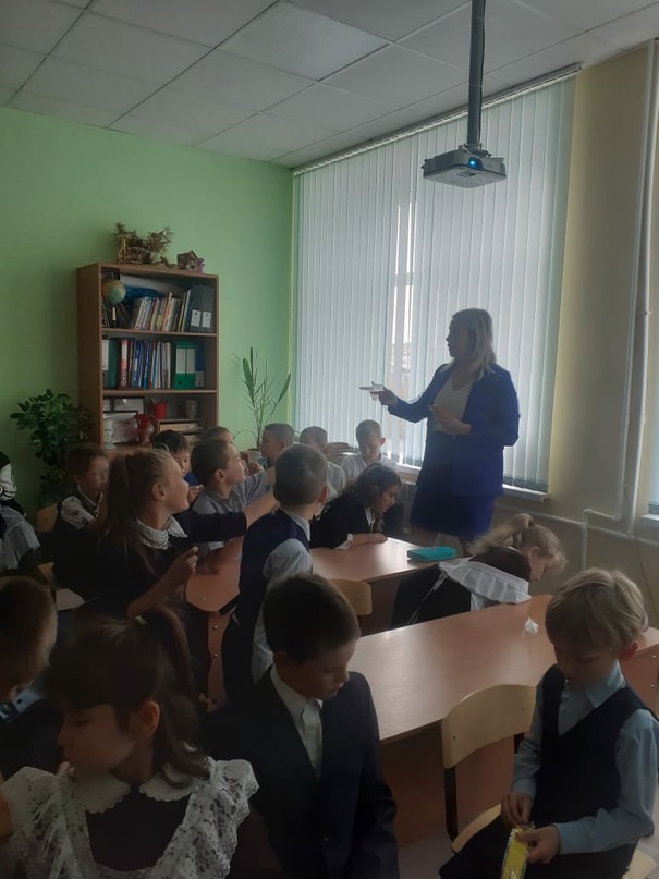 В рамках месячника безопасности в школе с учениками начальных классов была проведена профилактическая беседа представителем отделения профилактического сектора в Верхнеуслонском районе ТУ г. Казани ГБУ БДД К.В.Миннуллиной. Кристина Владимировна с помощью игры повторила с ребятами ПДД.
