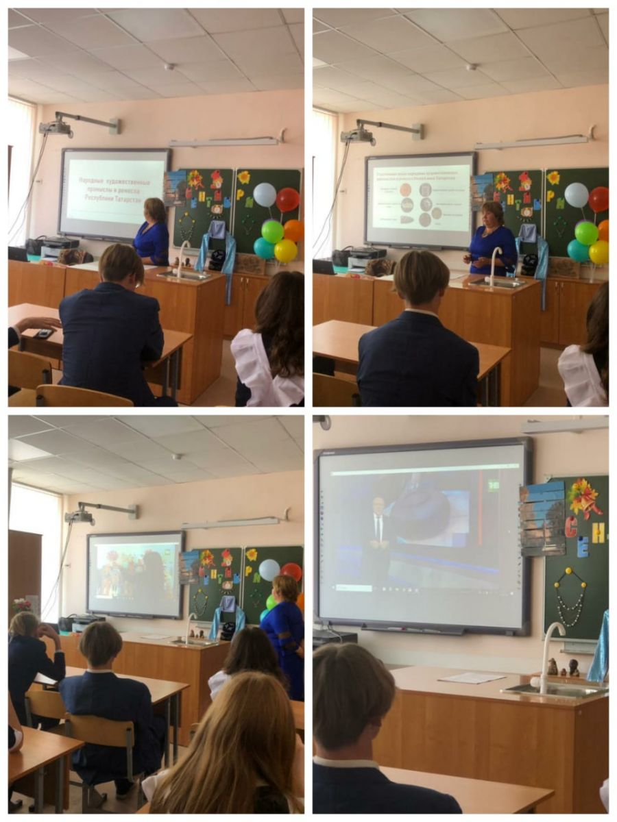 1 сентября в рамках Года национальных культур и традиций во всех классах прошли классные часы на тему "Народные художественные промыслы Республики Татарстан". Проведенные классные часы способствовали формированию у обучающихся представления важности и сохранения развития духовных ценностей, возрождения исконных национальных традиций, развитие национальных ценностей, обычаев культуры и традиций народов Республики Татарстан