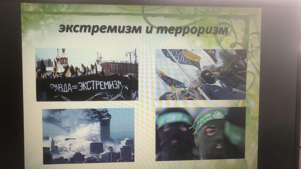 Говорили о проявлениях экстремизма и терроризма, и их видах, характерных чертах. Экстремизм становится, как правило, последней ступенью к возникновению терроризма. Противодействие экстремистской деятельности осуществляется по двум направлениям- это профилактика и непосредственное выявление, предупреждение и пресечение экстремистской деятельности.