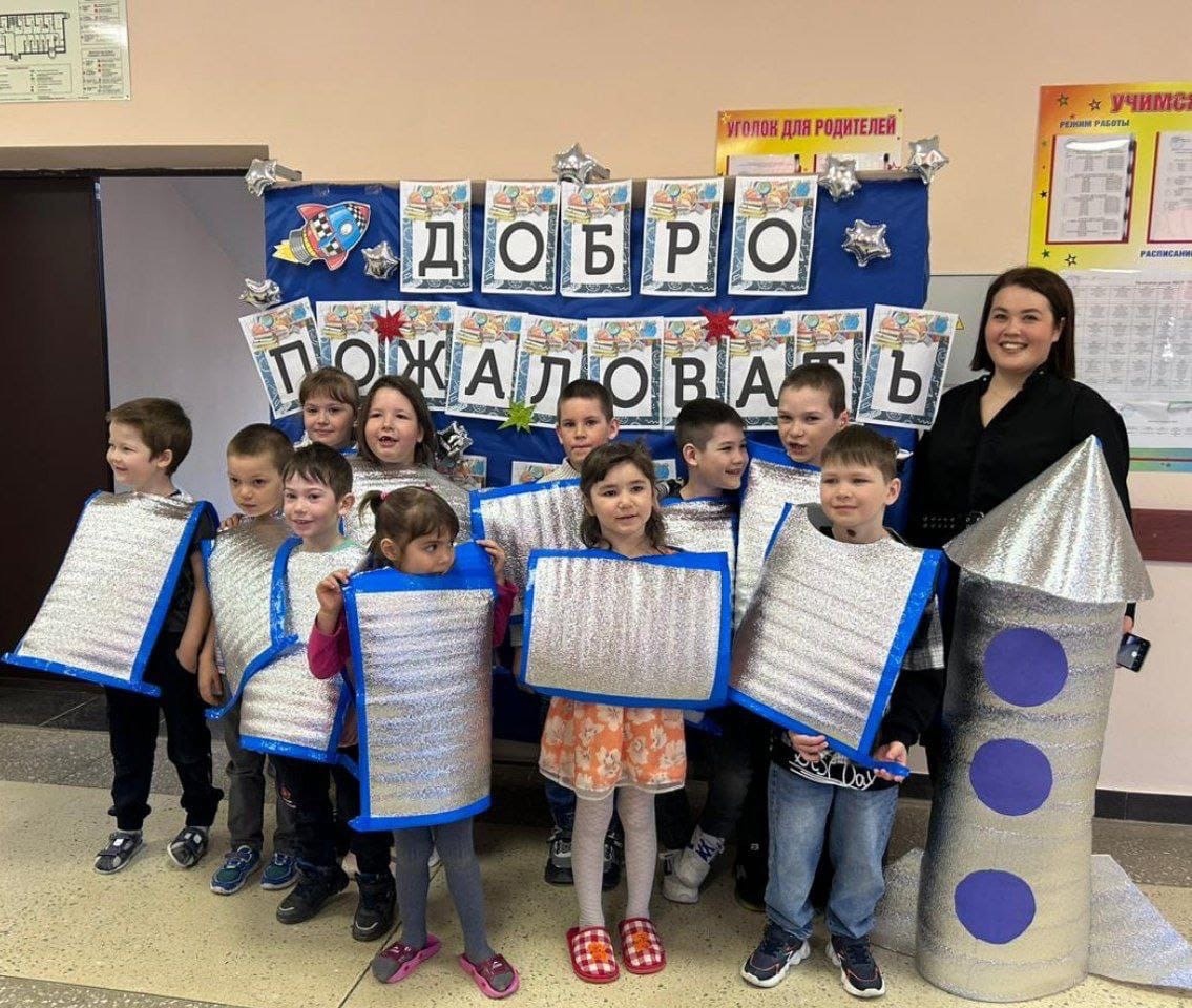 Праздник мы приурочили ко Дню космонавтики. Ребята познакомились друг с другом, увидели свой будущий кабинет, столовую, игровую, спортзал. На каждой станции были игры и задания. С помощью мнемотехники будущие ученики за три минуты выучили стихотворение про космос.