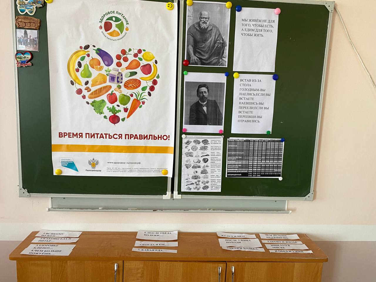 В рамках всемирного дня здоровья в 7 классе прошел классный час на тему ЗОЖ.Целью данного мероприятия стало создание благоприятных условий для формирования у обучающихся внимательного отношения к собственному здоровью посредством соблюдения правильного режима питания.Классный час прошел в виде беседы.которая началась с обсуждения высказываний Сократа и А.П.Чехова.В ходе беседы провели игру «Где искать витамины?»,познакомились с Таблицей вредных пищевых добавок,вспомнили правила здорового питания,в заключение поиграли в игру «Собери пословицу»