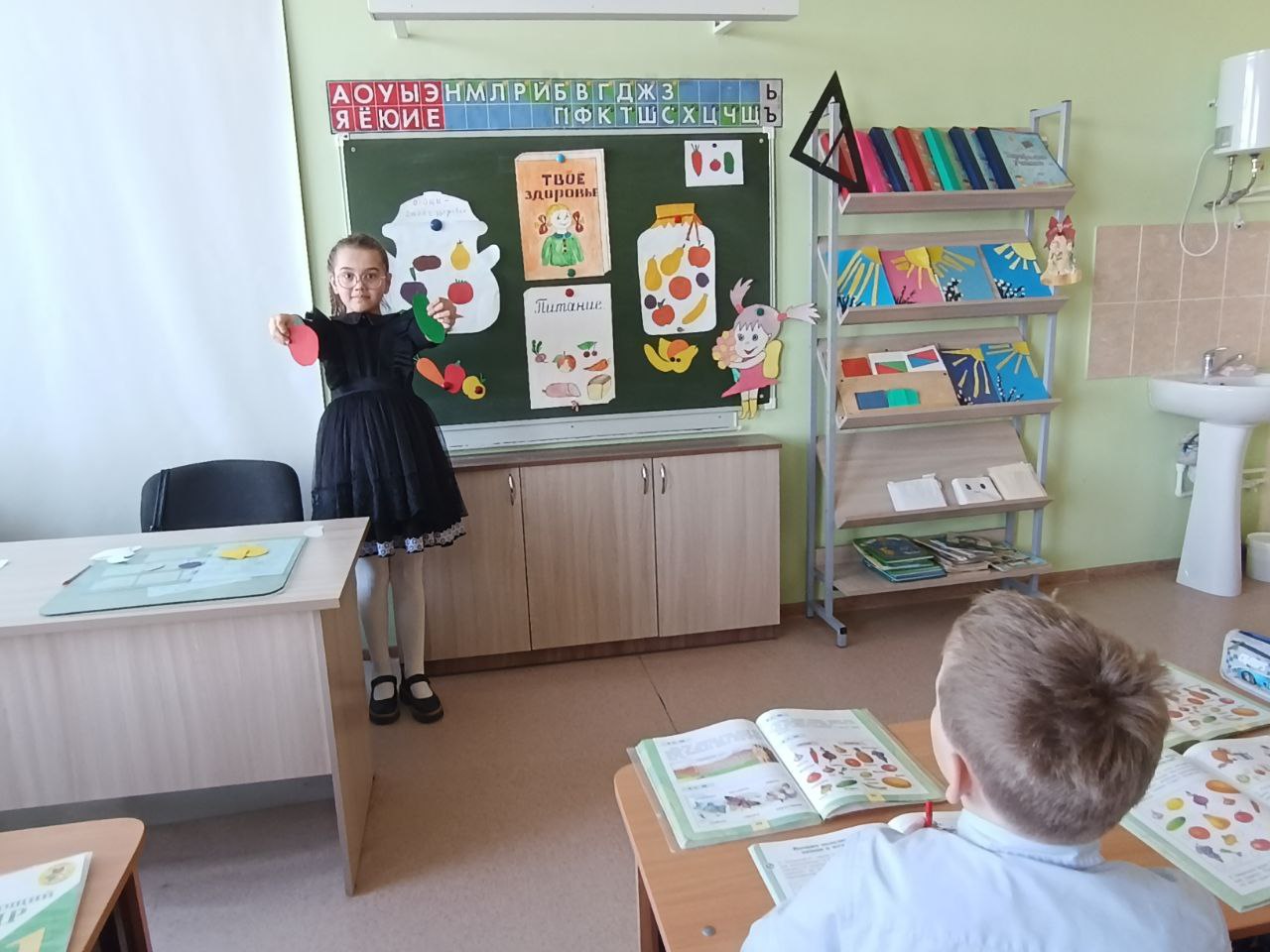 В рамках всемирного дня здоровья в 1 классе прошел классный час на тему "Здоровое питание". Целью которого стало создание благоприятных условий для формирования у обучающихся внимательного отношения к собственному здоровью посредством соблюдения правильного режима питания. Ребята познакомились с рядом витаминов, которые находятся в овощах и фруктах. На практике применили свои знания.