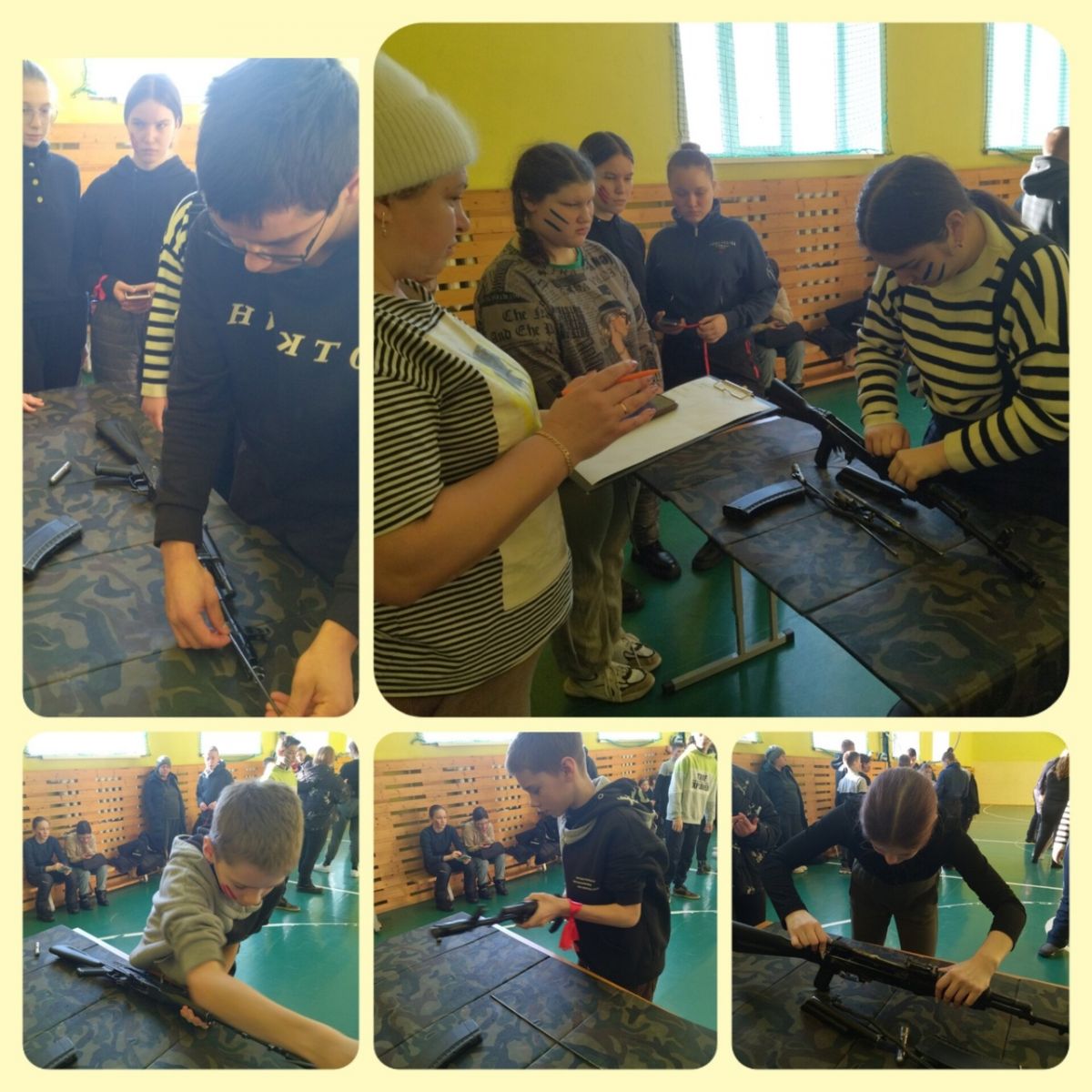 И началась поистине азартная и захватывающая всех игра. Команды Красных и Синих проходили 2 этапа игры. 1 этап прошел в школьном спортзале, а 2 этап на природе. Ребята состязались в разборке-сборке автомата, оказывали первую помощь раненому, соревновались в быстроте и ловкости на этапах военизированной полосы, выполняли нормы ГТО, показывали строевую подготовку, прошли полосу препятствий, разминировали минное поле, развели костер, сварили вкусный суп и др. На каждом этапе находился независимый судья, который начислял полученное количество очков.