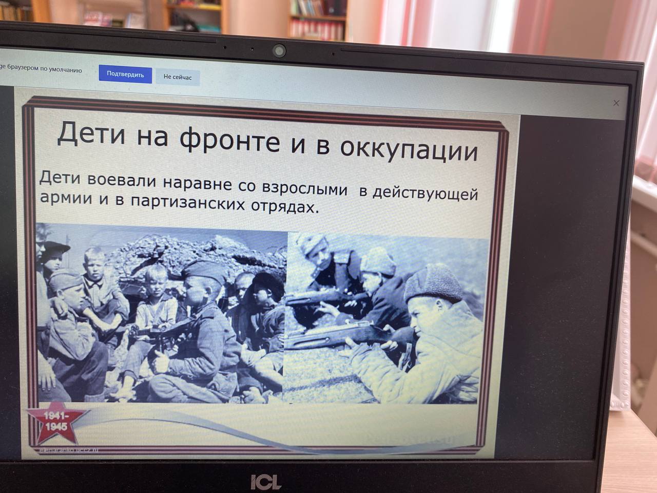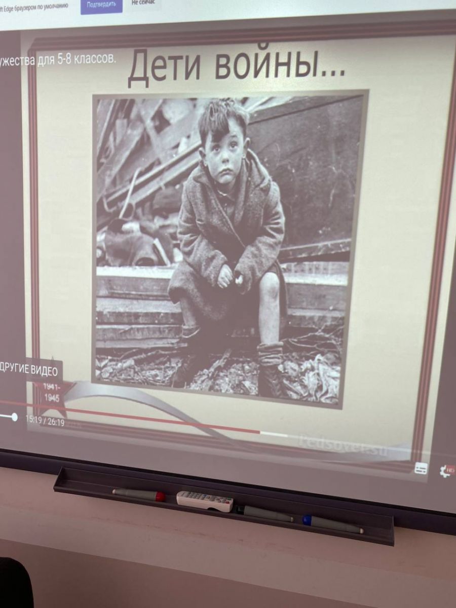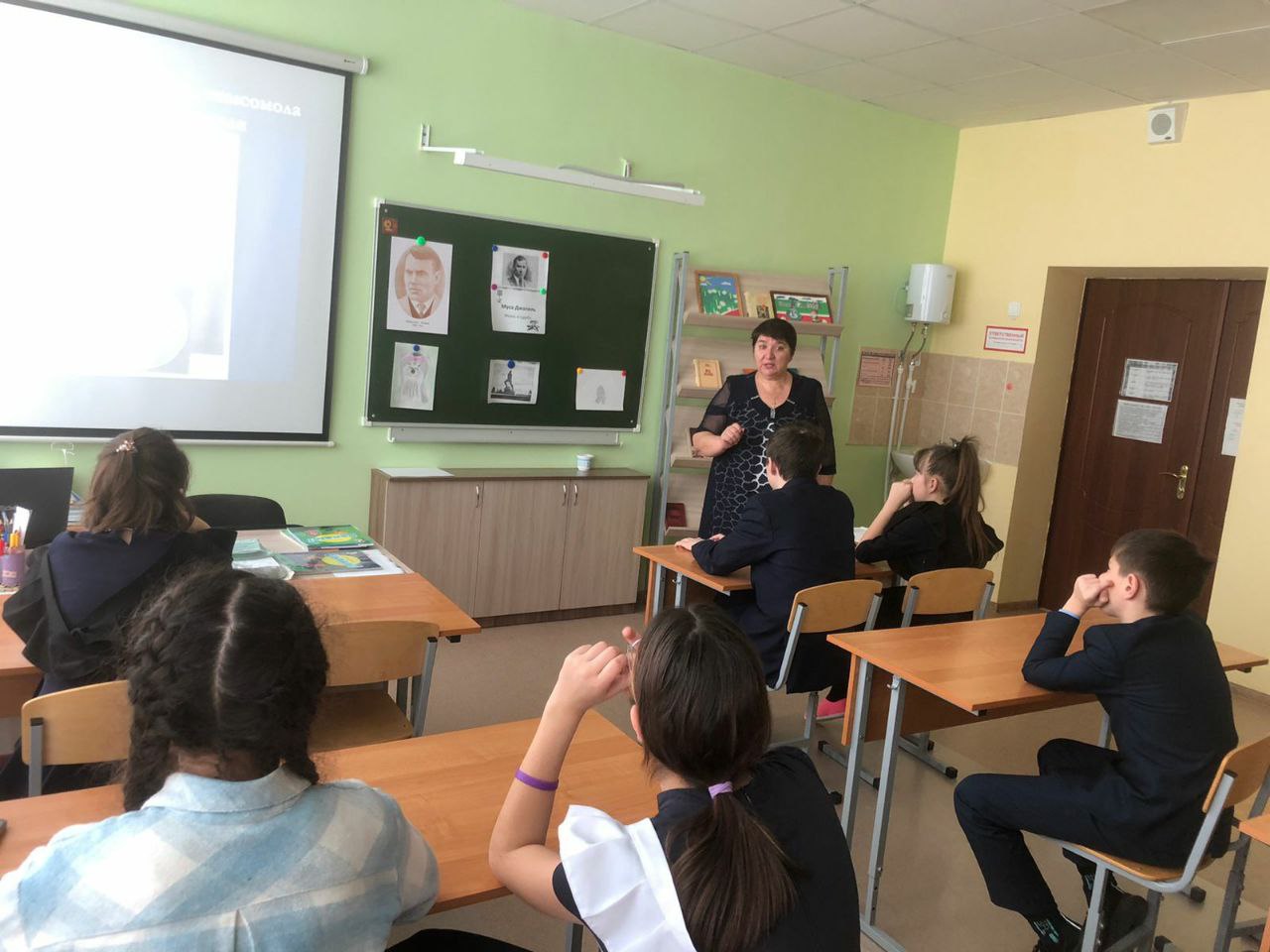 В рамках месячника гражданско- патриотического воспитания в нашей школе прошёл урок мужества. Учащиеся 8 класса просмотрели фильм "Равняемся на героев-ровесников". Ребята познакомились с детьми-героями, как Валя Котик, Марат Казей, Зина Портнова, Леня Голиков, Александр Матросов, Володя Дубинин, Зоя Космодемьянская, Сергей Тюленин и многими другими настоящими патриотами.