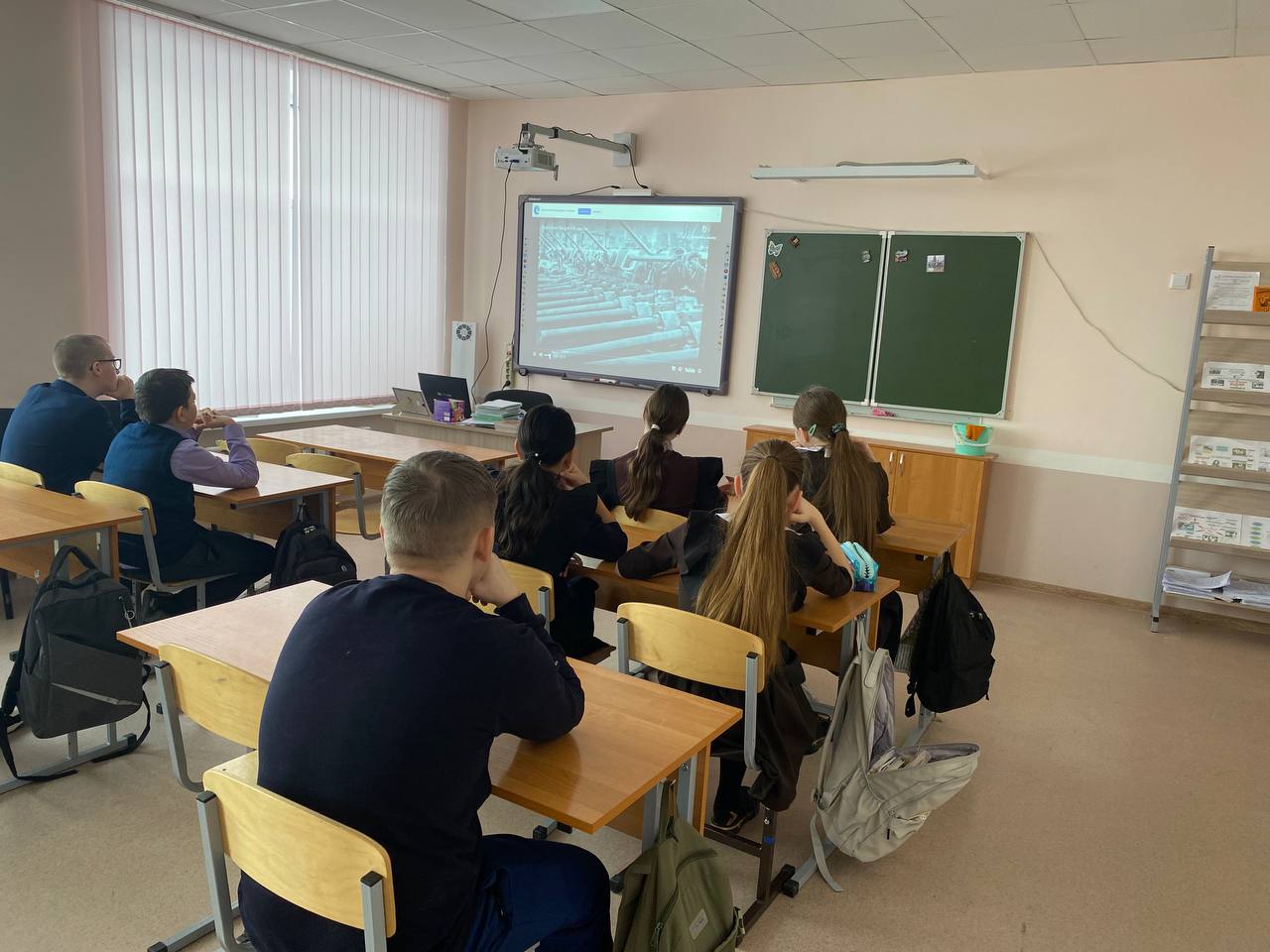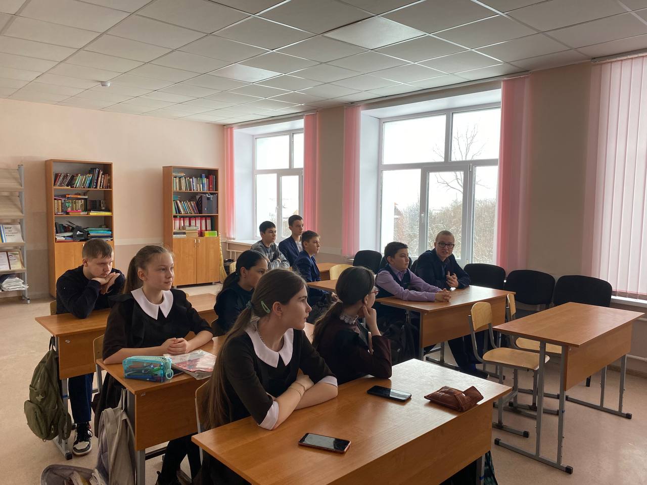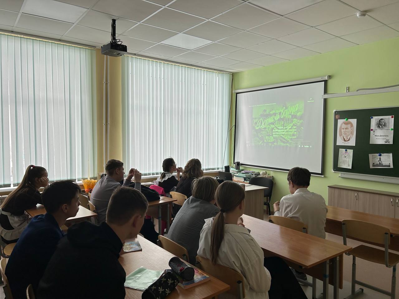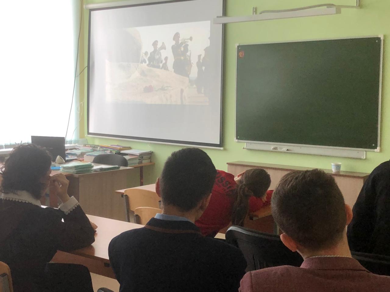 Сегодня в 7 классе прошёл Урок мужества «Мы будем чтить ваш подвиг вечно».Школьники просмотрели фильм,вспомнили о подвигах сверстников в Великой Отечественной войне,далее состоялась беседа о патриотизме,о необходимости каждому пройти воинскую службу достойно,как это сделал сын классной руководительницы,которая показала детям Благодарственное письмо от командира части,в которой проходил службу Валеев Руслан.