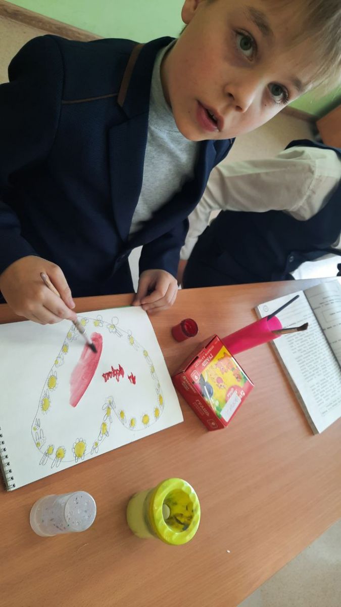 Внеурочная деятельность "Радуга творчества". На занятии ребята рисовали красивые открытки-сердечки из цветов, чтобы поздравить своих родных с Днем Святого Валентина.