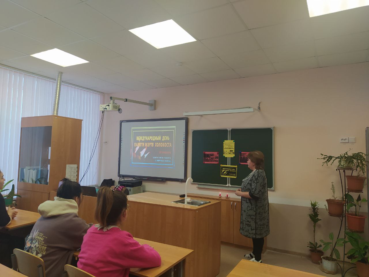 В 8-9 классах прошел классный час "Пока мы помним -мы живы", посвященный Международному дню памяти жертв холокоста. На мероприятии ребята узнали об истории памятной даты, о жертвах национализма в концлагерях. В завершении учащиеся провели акцию "Свеча памяти" и почтили всех погибших минутой молчания.