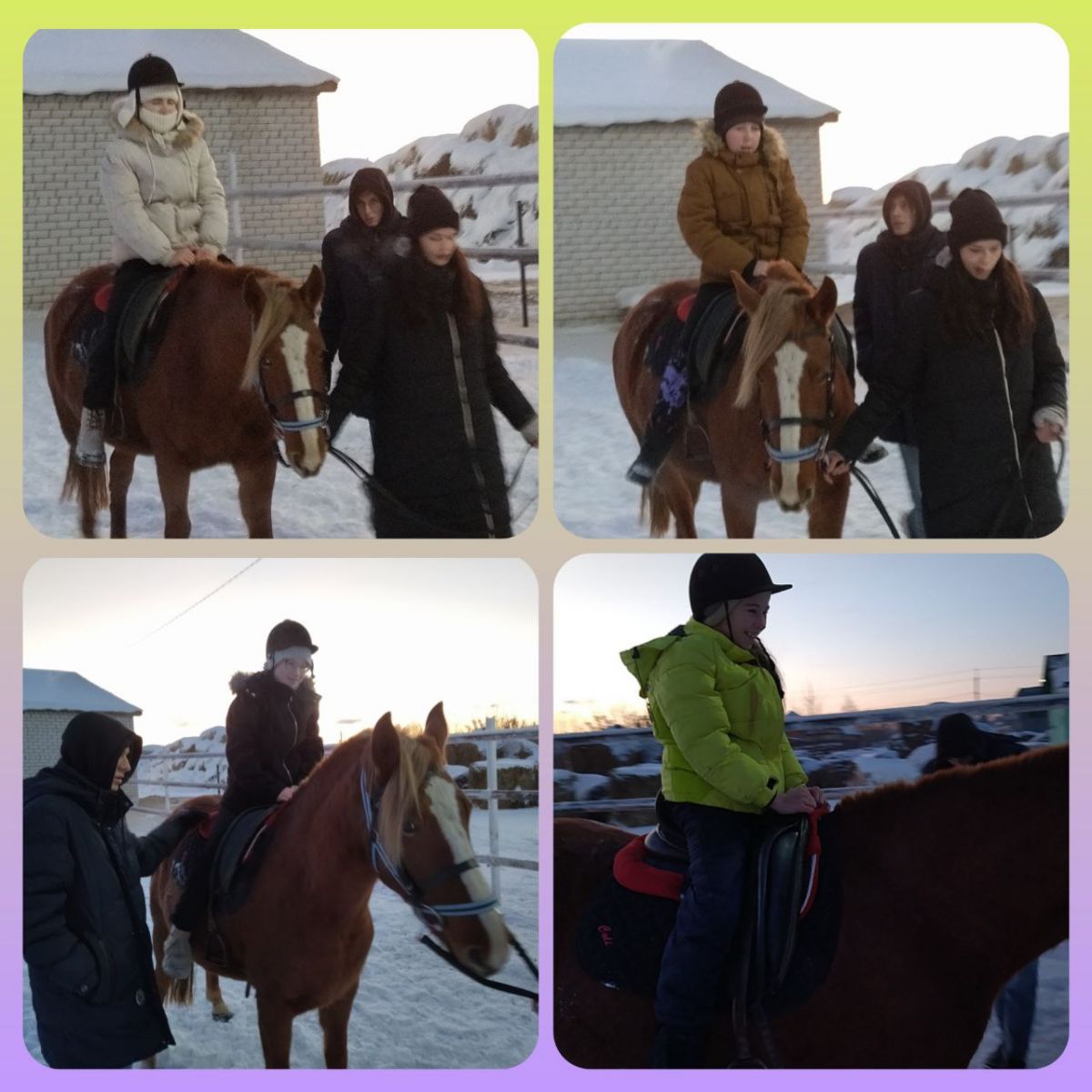 В мире не угас интерес к лошадям , благодаря энтузиастам и любителям прекрасного , создаются Конные дворы . Узнав об одном из них, мы 15 декабря поехали на экскурсию в г. Буинск. Там нам провели увлекательную и незабываемую экскурсию!Для начала ребятам рассказали: о мерах безопасности; о том, как правильно кормить лошадей; ухаживать за ними.Дети , выслушав все инструкции , с любопытством разглядывали настоящих лошадей . Одним из способов ухаживания за животными это - чистка лошадей . Ребята по желанию ухаживали за животными, чистили их. Все дети с удовольствием, принялись за работу, так как одно прикосновение к теплым бокам лошади вызывало искреннюю радость! Кульминацией всего происходящего - было катание верхом. Каждый ученик смог ощутить себя наездником. На их лицах была счастливая улыбка , чувствовалось восхищение и доверие.