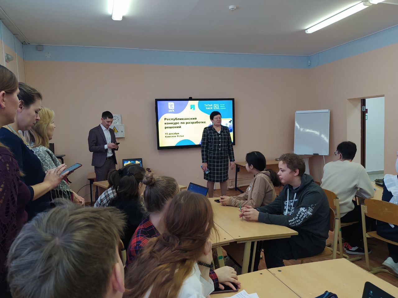 Республиканский конкурс по разработке проектов "TatarHack Камское-Устье". В рамках конкурса был проведен хакатон, в котором ребята за 3 часа разработали IT-проекты в областях туризм, образование, экология и спорт. Команда наших ребят в составе Колесникова Н, Яшагиной Н, Ахметзяновой А, Рвачевой К. под руководством Миннигалеевой А.Н. создали проект "VR-GO", направленный для разработки туристических VR-программ для людей с ОВЗ. Наши ребята прекрасно защитили свой проект. Компетентное жюри из 10 команд выбрало 3 команды-победительницы. Ура! Наши ребята стали победителями! Ребята награждены ценными призами. От всей души поздравляем и желаем дальнейших успехов!