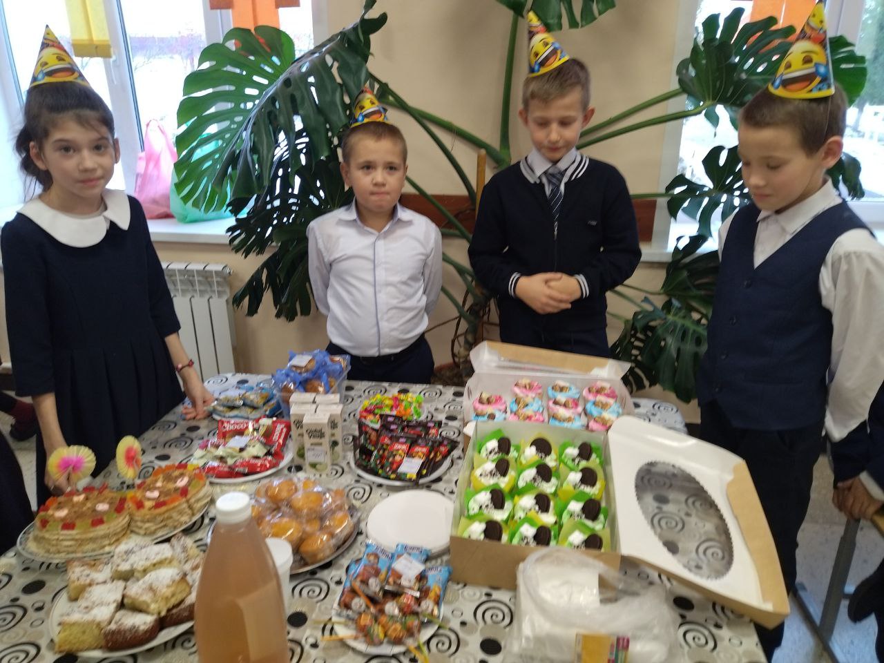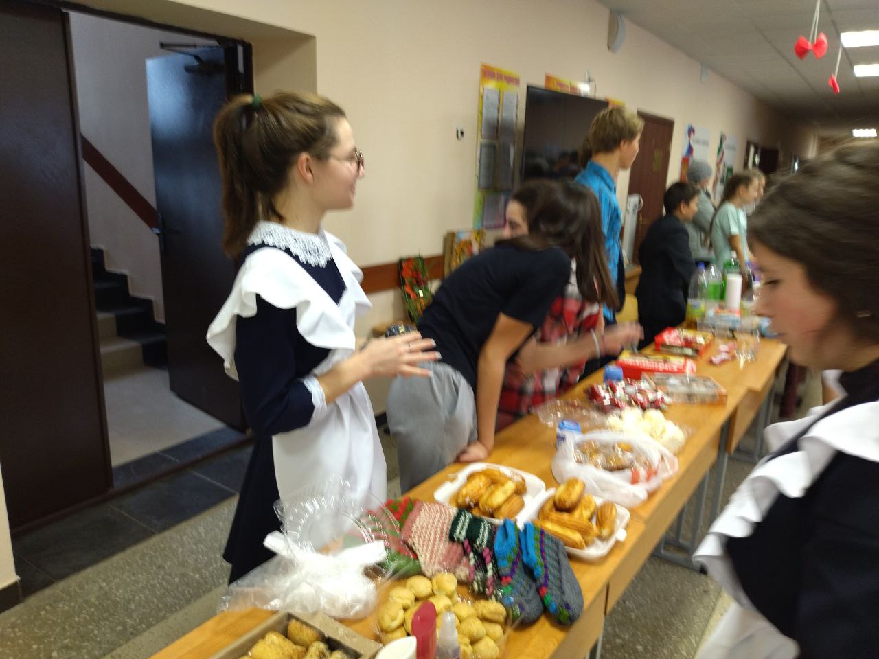 Собирайся - ка, народ,У нас ярмарка идет!А на ярмарке что есть,Вам всего не перечесть!Смотрите, сколько товаров, аж глаза разбегаются.15 ноября с шумом -гамом , ярко и красочно прошла ежегодная предпраздничная ярмарка, посвященная юбилею нашей школы. Как видите, наши родители постарались на славу.На ярмарке были скоморохи, девочки из 5 класса. Они со звонкими голосами зозывали народ: << А ну, честной народ! Подходи смелей, покупай товар, не робей!!!» Естественно, весь товар был распродан за полчаса - а стол ломился от вкусняшек, просто загляденье!!!Дети очень весело и оживленно, с азартом и креативно предлагали свой товар. Интерес к данному мероприятию превзошел все возможные ожидания. Много ярких и незабываемых эмоций и впечатлений принес праздник, как детям, так и взрослым