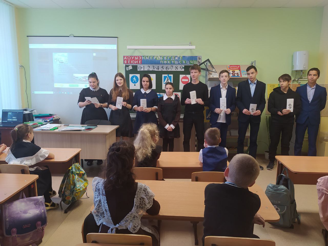 Учащиеся 9 класса провели для первоклассников акцию "Как не стать жертвой ДТП", посвященную Всемирному дню памяти жертв ДТП. Ребята побеседовали с младшими школьниками о правилах ДД, раздали каждому школьнику буклеты.