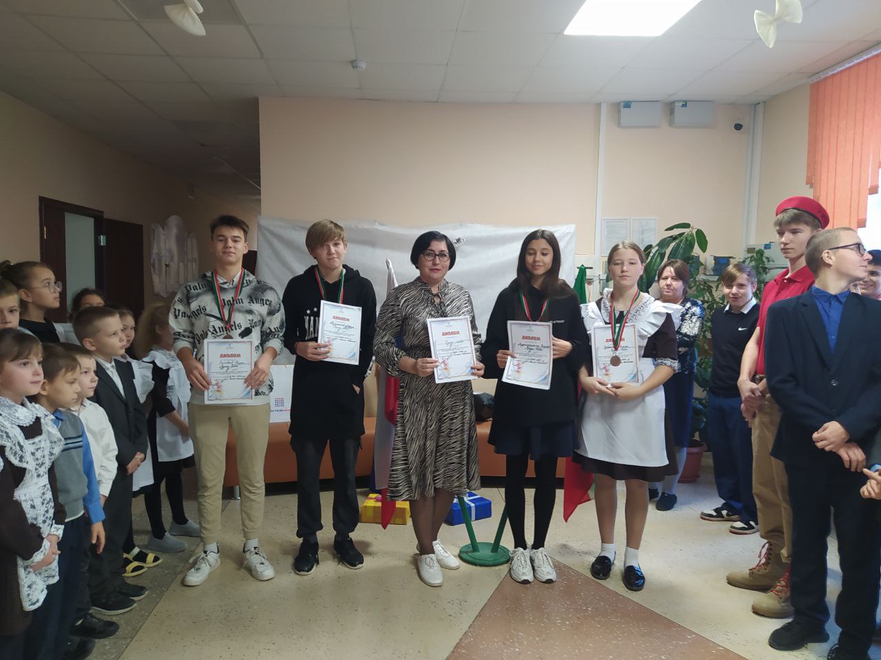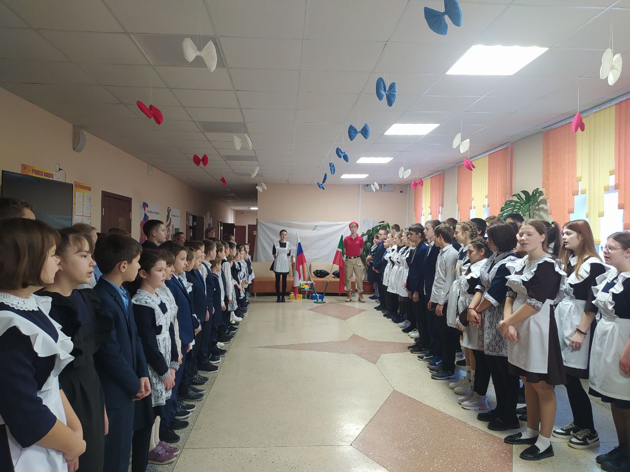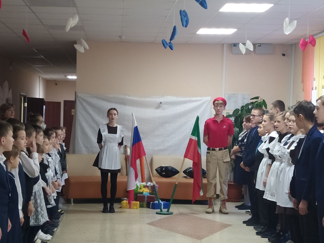 Традиционное начало недели. 14 ноября церемонию выноса Флагов России и Татарстана предоставили победителю и призеру республиканского конкурса "Слово о педагоге" Агафоновой А. и Колесникову Н.Затем на линейке наградили призеров соревнований по бадминтону. Желаем всем победителям и призёрам дальнейших успехов!