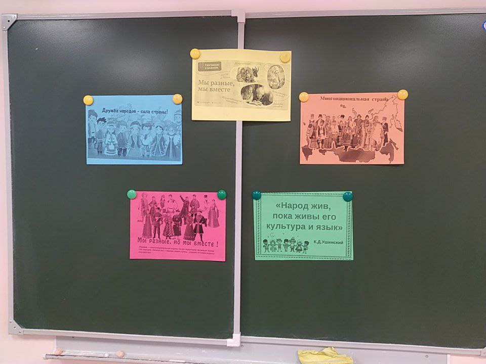 «Мы разные, мы вместе»-так называлось проведённое в 5-7 классах мероприятие из цикла «Разговоры о важном». Занятие прошло в форме эвристической беседы. Были использованы видеофрагменты , интерактивные задания, разгадывание филворд и решение интересной задачи, за правильный ответ на которую полагался сладкий приз. Школьники отвечали на вопросы «Большого этнографического диктанта», показали свою эрудицию в вопросах культуры и пришли к выводу, что всех нас объединяет русский литературный язык и уважение к родным языкам народов России. И очень важно сохранить ценности, которые нас объединяют