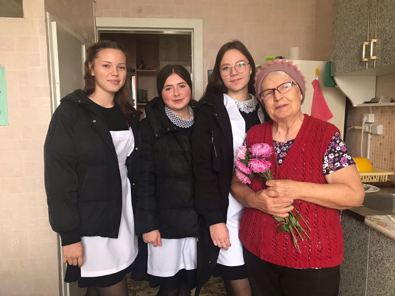 Накануне Дня Пожилых людей девушки 11 класса поздравили с праздником своих бабушек и дедушек.