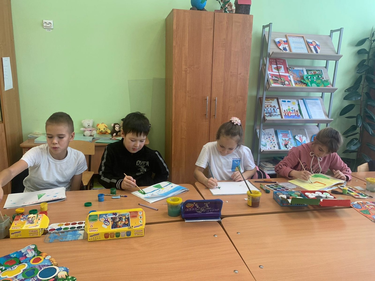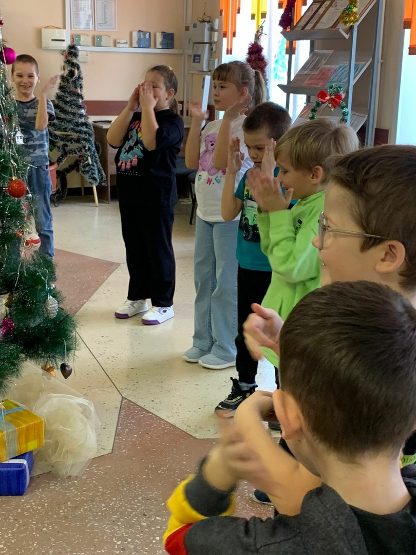 Для учащихся начальных классов была организована игровая программа «Вокруг елки» , где они с удовольствием отгадывали загадки, участвовали в конкурсах и играх, музыкальных танцах. Также для ребят была организована мастерская художника . Ребята получили за день массу эмоций и радость общения.